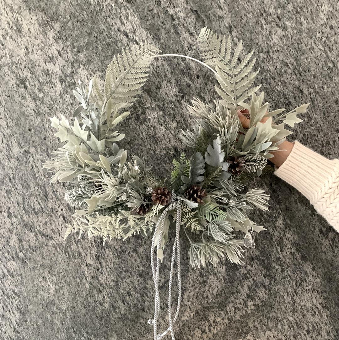 Wianek świąteczny w stylu hygge na obręczy 30cm