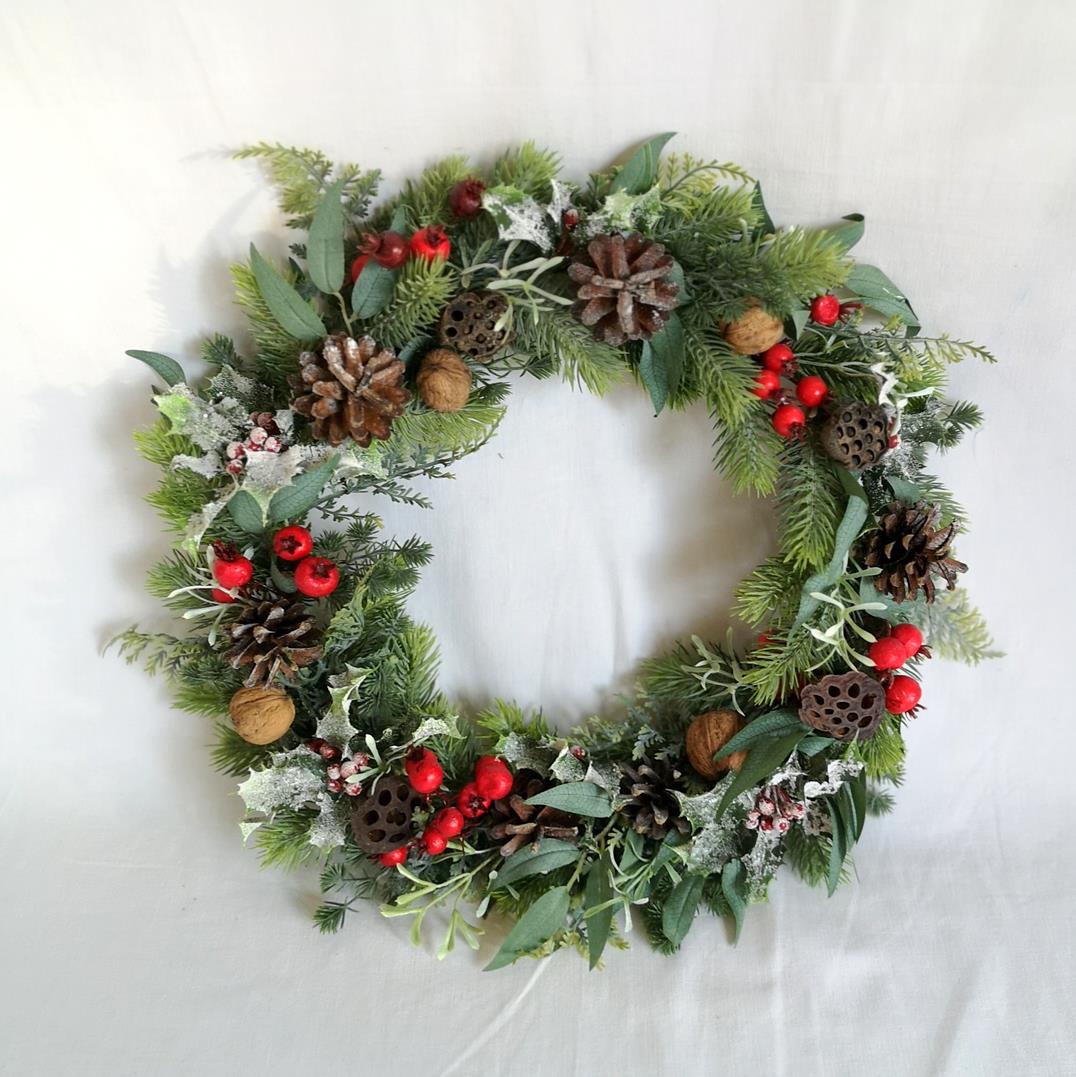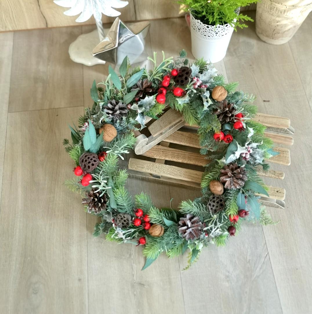 Wianek z czerwonymi akcentami świąteczny 35 cm