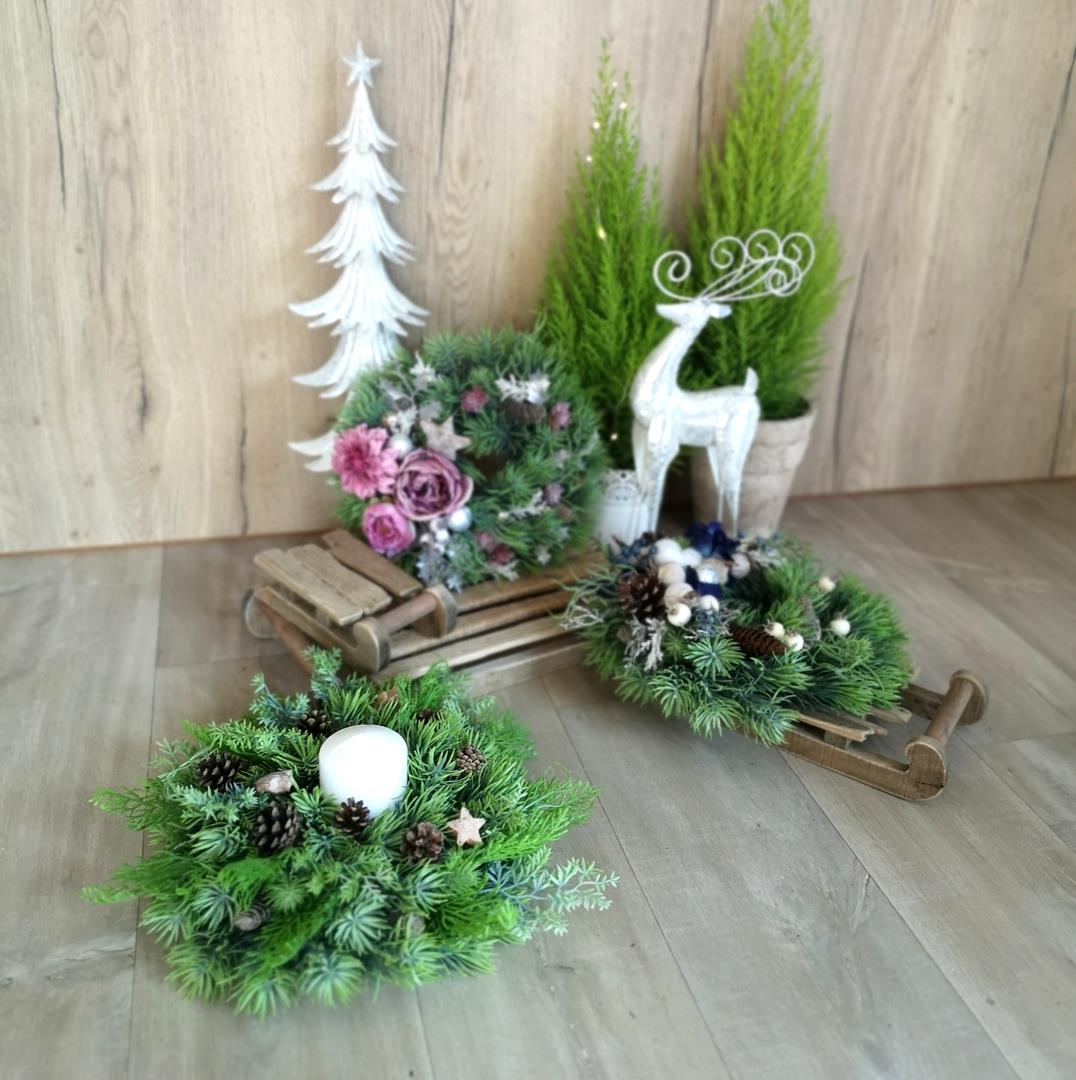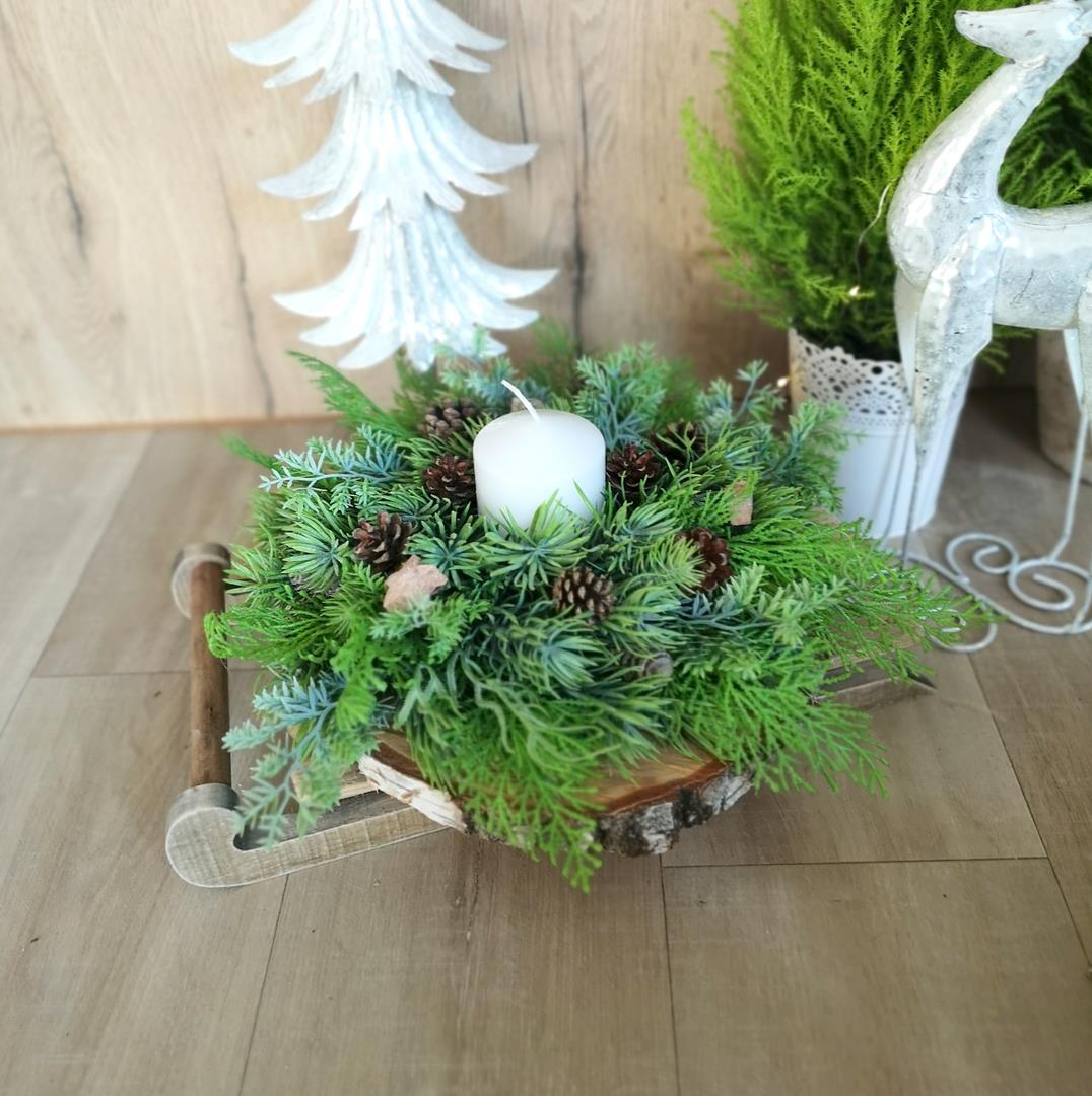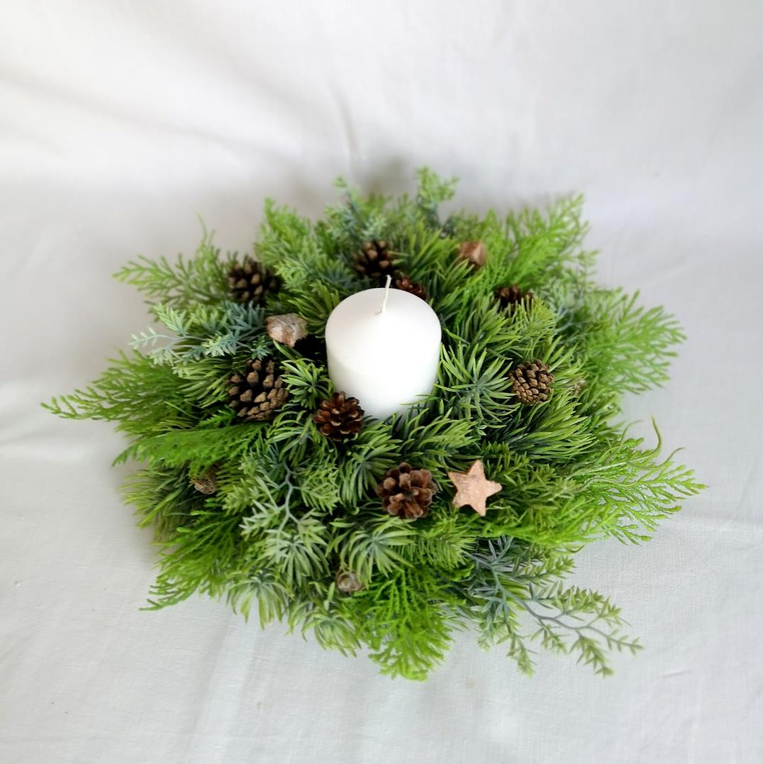 Świąteczny wianek na stół ze sztucznego świerku 30 cm